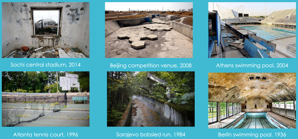Many venues of the previous host cities, such as Rio 2016, Beijing 2008, Grenoble 1968, and Berlin 1936 have been abandoned. This obviously explains that many countries hosted Olympic Games without any long-term legacy plans which lead them to the disaster. Also, past experiences showed that outcomes from staging major events are mostly harmful and negative, especially if one considers how sports facilities and their surroundings are utilized after the end of the event. In the end, these abandoned venues teach a lesson that the Olympic Games are a giant waste of money.