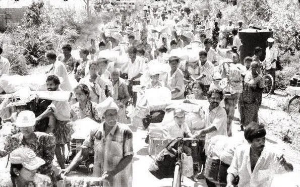 Leaving Jaffna in 1995: Taking only what was essential. PC: Tamil Guardian